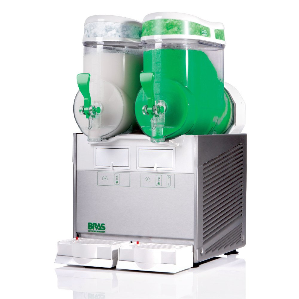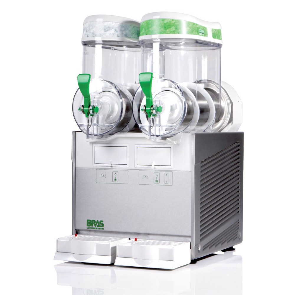 Granitore/Distributore di crema caffè o creme fredde a 2 campane modello Quark 2 dalle dimensioni estremamente ridotte, ideale per piccoli e medi consumi.