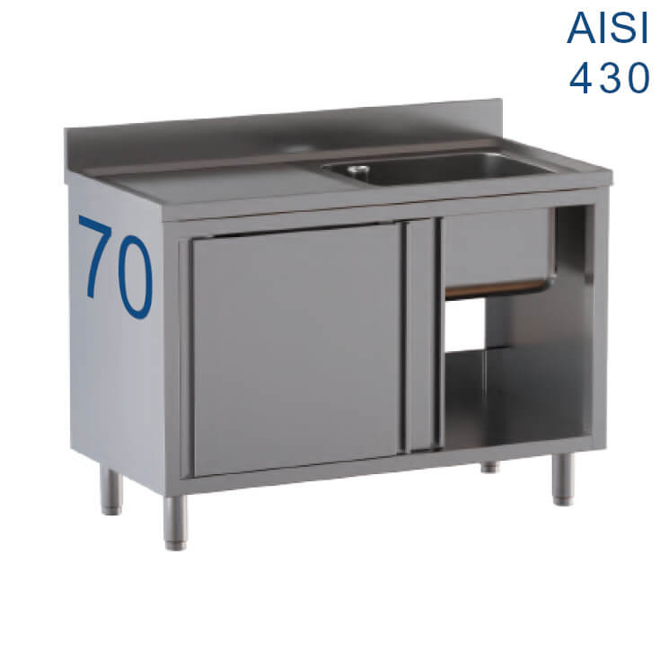 Lavatoio 1 vasca gocciolatoio a sinistra armadiato acciaio inox Aisi 430 profondità 70 cm