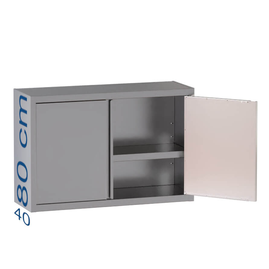 Pensile porta battente 1 ripiano altezza 80 cm acciaio inox Aisi 304