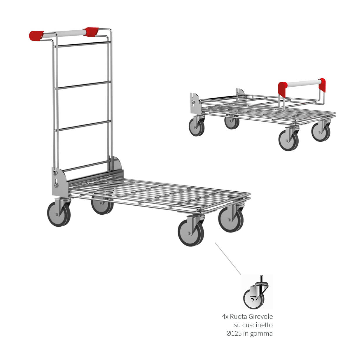 RUOTE: 4 ruote, Ø 125 mm in gomma
