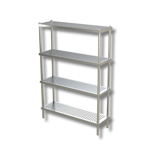 Scaffale in acciaio inox Aisi 430, con ripiani forati.