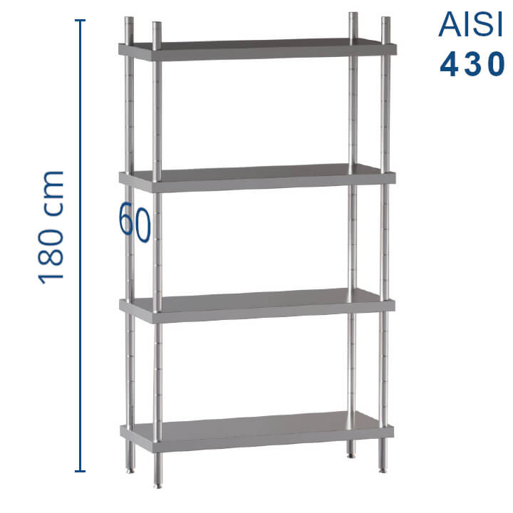 Scaffale altezza 180 cm ripiani lisci profondità 60 cm acciaio inox Aisi 430