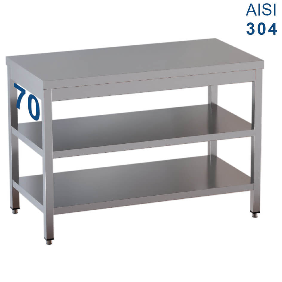 Tavolo a giorno acciaio Aisi 304 2 ripiani senza alzatina profondità 70 cm