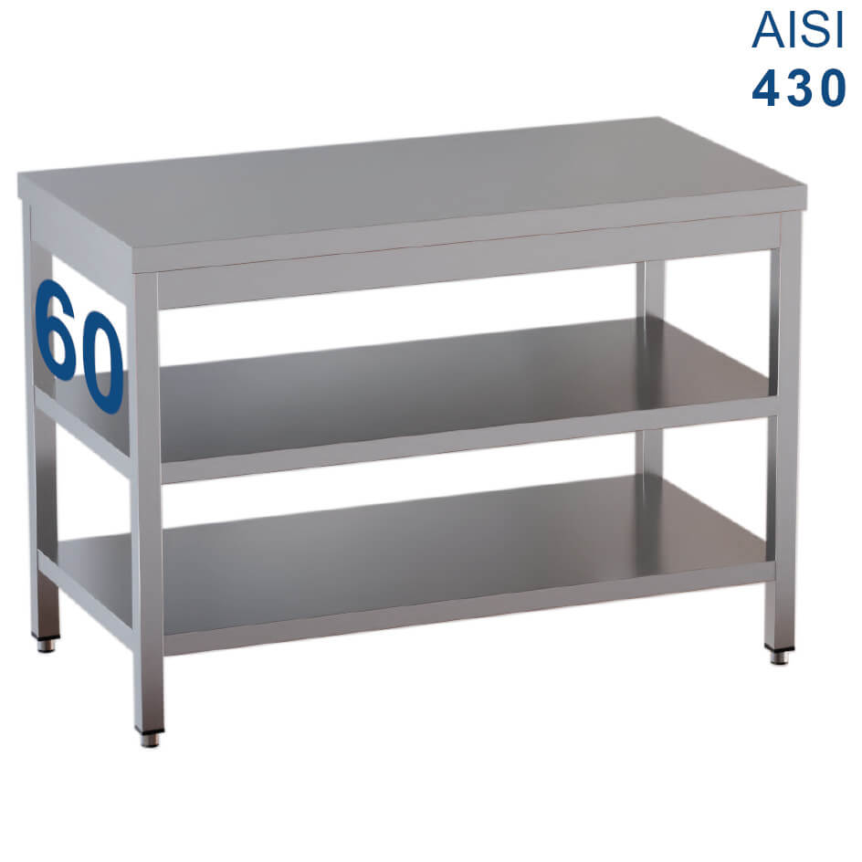 Tavolo a giorno acciaio Aisi 430 2 ripiani senza alzatina profondità 60 cm
