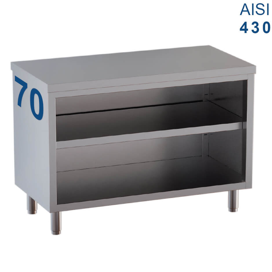 Tavolo armadiato acciaio Aisi 430 2 ripiani profondità 60 cm