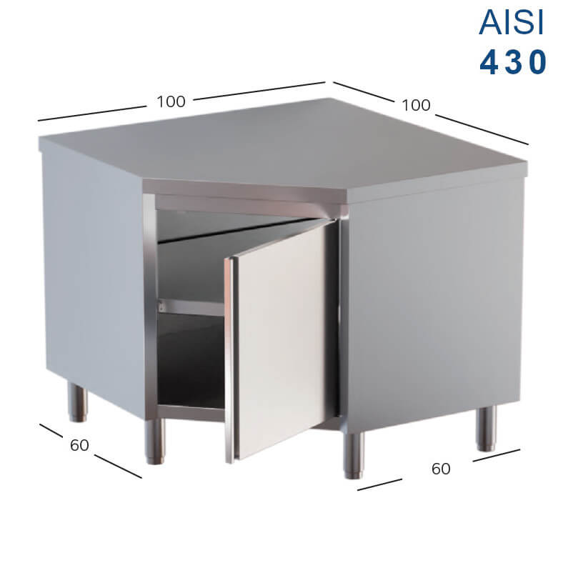 Tavolo armadiato angolo porta a battente acciaio Aisi 430 profondità 60 cm