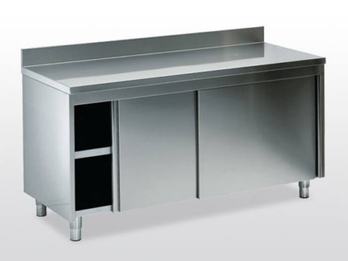 Tavolo armadiato neutro con porte scorrevoli e alzatina prof. 70 cm
