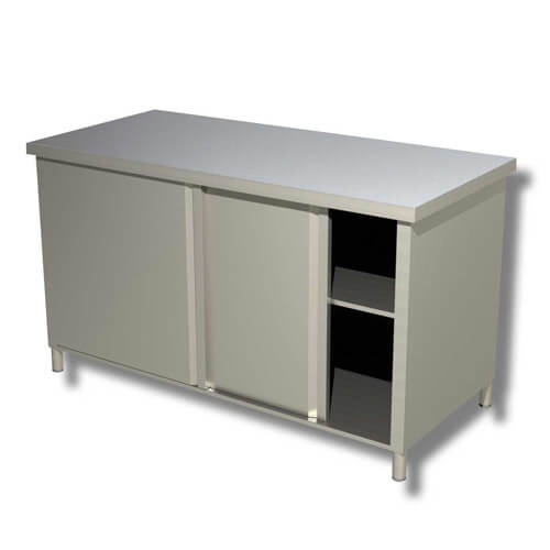 Tavolo armadiato passante con porte scorrevoli due lati acciaio Aisi 430 profondità 70 cm
