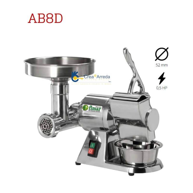 Tritacarne Grattugia alluminio 370 W bocca carne ø 52 mm rullo inox Fimar AB8D: