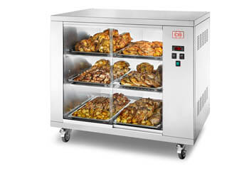 Vetrina calda ventilata con ruote per girarrosti planetari elettrici e a gas P7/5